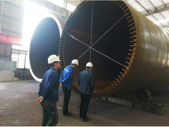 4月2日,由中国水电四局(兰州)机械装备有限公司云南分公司承制的福建贡川风电塔筒项目在湖南衡山制作基地顺利通过业主巡查检验。